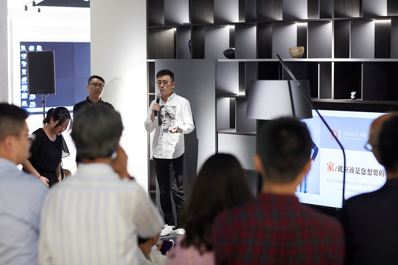 現(xiàn)場由特銘家具事業(yè)部總監(jiān)張曄分享品牌歷史,國內(nèi)知名設(shè)計師王征、合作品牌戈蘭尼電器現(xiàn)場講述品牌合作背后的故事,藝術(shù)與文化的結(jié)合,讓啟幕儀式更具意義。