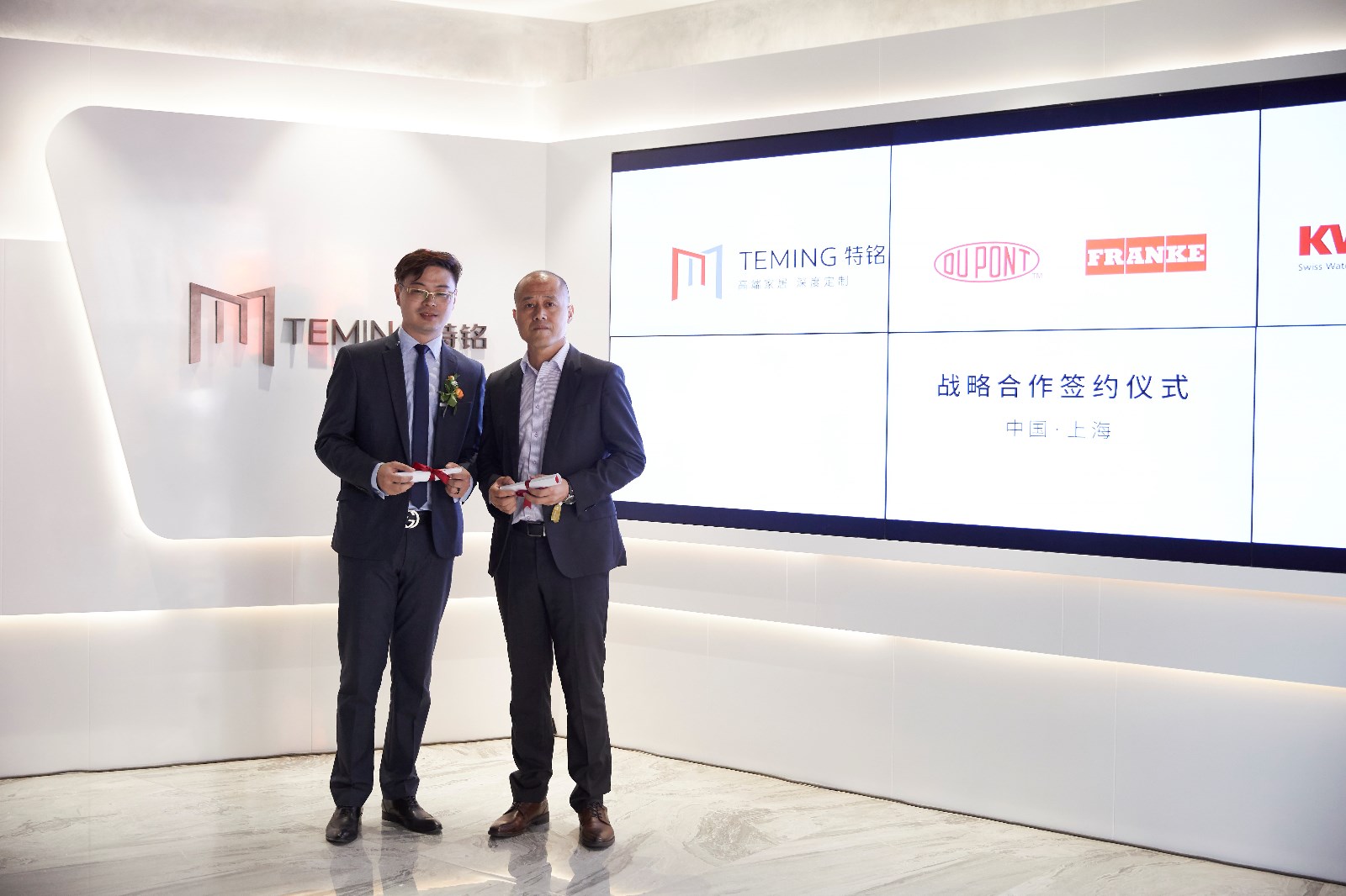 與美國杜邦Corian、KWC、Franke的品牌代表方舉行簽約儀式